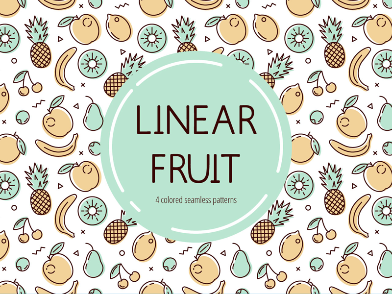 Most of the patterns included in this collection are designed by professional designers, so you can be sure about their quality. You’ll find playful cartoon-style fruit illustrations, minimalistic modern fruit icons, tropical vibes with pineapples and coconuts, or juicy citrus designs perfect for summer projects.