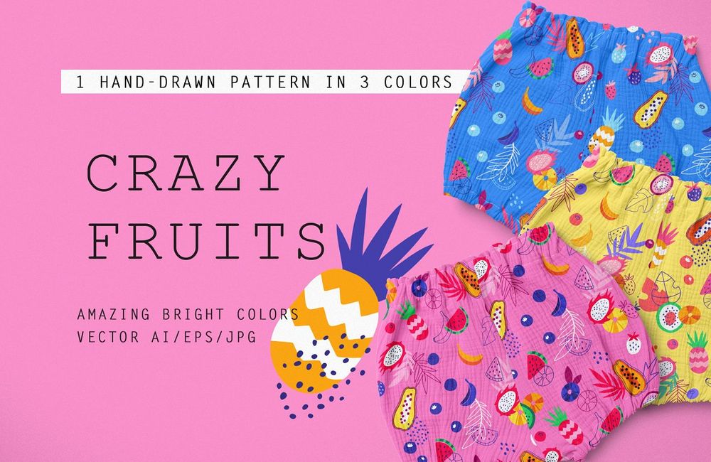 “Crazy Fruits” – it is a juicy bright colors and summer vibes. Perfect for apparel, fashion, fabricks, covers and many others.