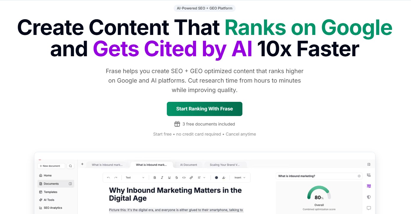 Why it’s great: Frase understands user intent and crafts SEO-friendly drafts in minutes.