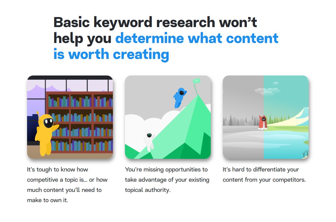 MarketMuse uses deep learning to analyze entire topic clusters and recommend improvements for your site’s authority. It’s designed for long-term SEO growth.