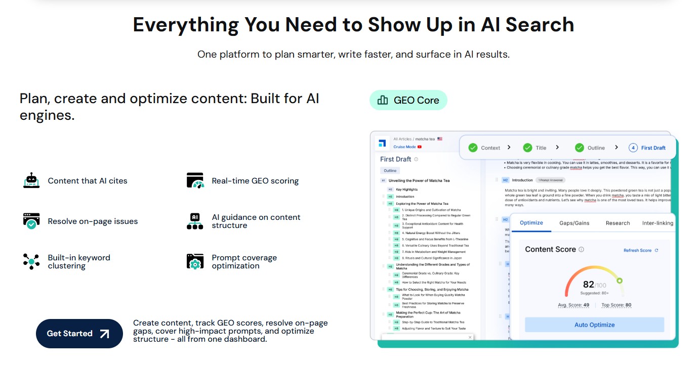 Outranking.io is the go-to platform for strategic content optimization. It uses AI to suggest structure, internal links, and even E-E-A-T improvements.