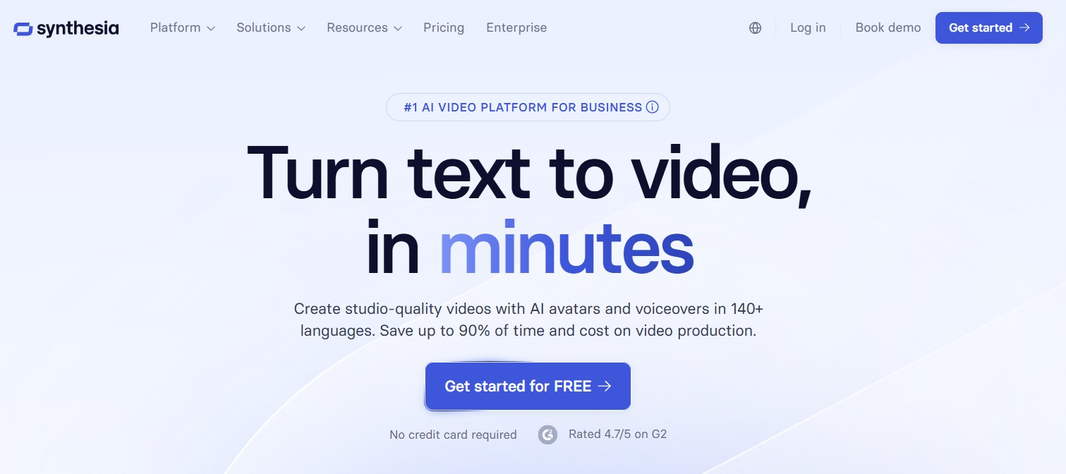 Synthesia helps you create professional videos without cameras or actors. You can choose from hundreds of AI avatars, select a voice, and type your script — the platform turns it into a realistic talking-head video in minutes.